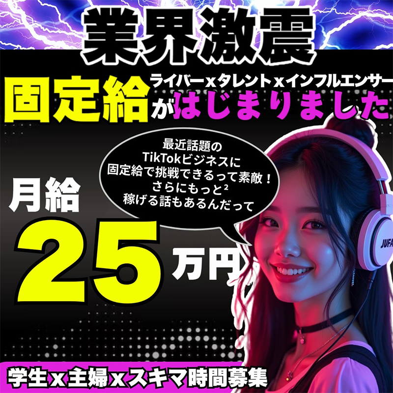 固定給料ライバー大募集!リスクなくTikTokビジネスに参加!