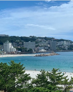 青空と 白い砂浜 織りなして 緑の松や 浜に輝く