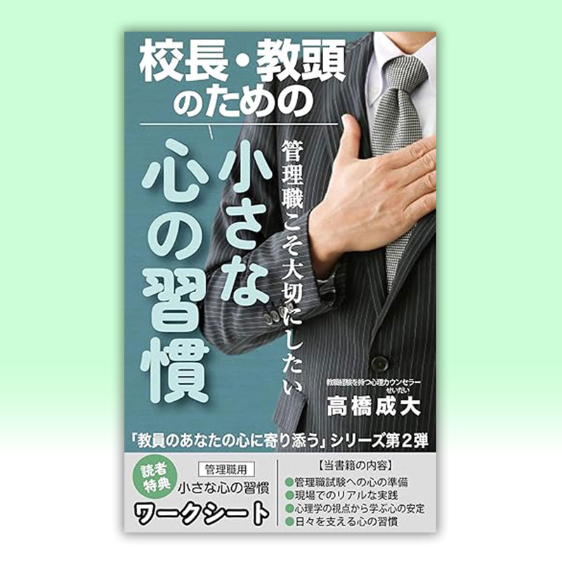 でも、その一方で、教職員や保護者、地域の方々、そして子どもたちと信頼関係を築き、一緒に前に進む喜びもたくさんありました。この本では、そんな実体験の数々をもとに、管理職試験への心の準備、現場に出てからのリアルな困難、そして管理職としての日々を支える「心の習慣」について綴っています。