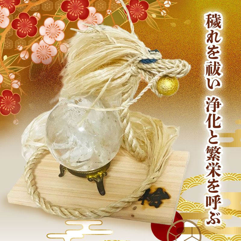 清浄な氣とされ縄文から続く日本伝統のひとつ「精麻」と飛躍や守護、豊穣など様々な力の象徴となる「龍」を組み合わせたお守り。いつもの空間を『神聖な場所』へ引き上げ、運氣向上と開運をサポート。 自立、しめ縄、和飾りなど要望やご予算に合わせ、巫女が一つひとつ御用意いたします。自宅や事務所のお守りや御祝いの贈り物としても人気を博しております。