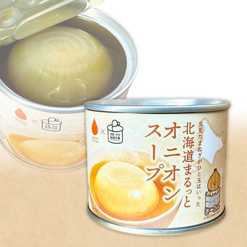 小玉の北見たまねぎをオニオンスープに漬け込みました。 玉ねぎそのものの甘さが味わえ、箸でホロッとほぐれるほど柔らかく、旨味抜群の美味しさです。 ◉1缶430円より(送料590円〜) 非常食にもお勧め 保存期間:製造日より3年