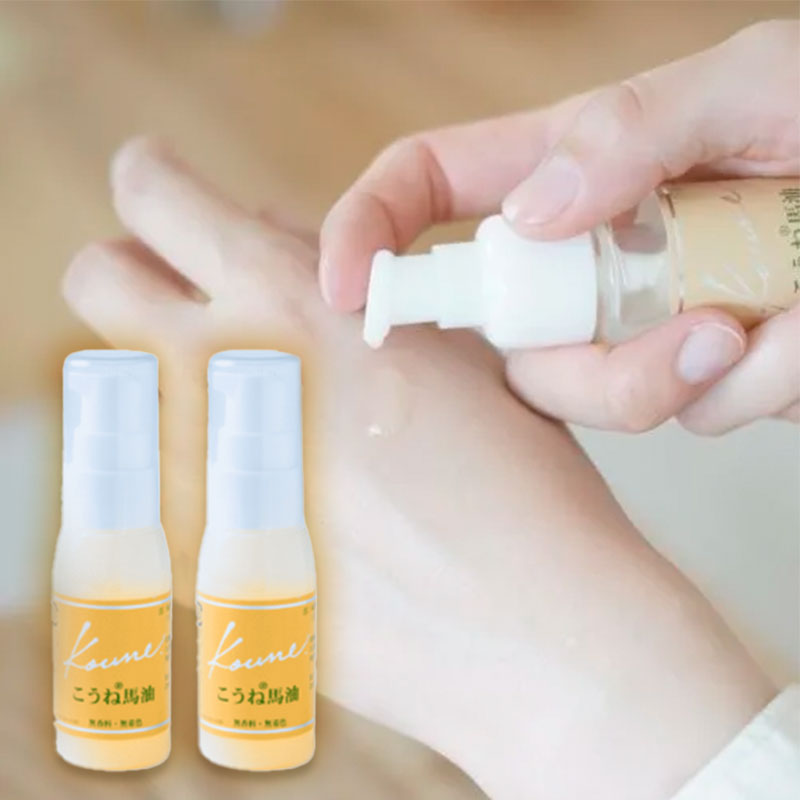 持ち運びに便利なプッシュ式。極めて希少な馬のタテガミ下の馬脂『こうね』のみで作られた天然オイル。他の部位の馬脂で作られた馬油に比べて数倍の「α-リノレン酸」が含まれています。こうね馬油は肌なじみがいいのが特徴です。 こうね馬油 30ml×2本セット 6,600円(送料込)