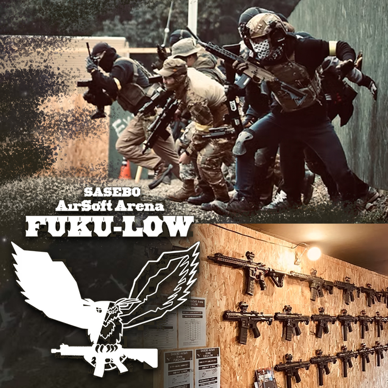 佐世保市最大のCQBフィールド 「FUKU-LOW」 巨大やぐらや迷彩廃車など 全てのプレイヤーが楽しめるよう 熟考され配置されたバリケード 踏みいれた瞬間味わう「非日常」をあなたに。 ☆ナイターゲーム対応 ☆レンタルガン20丁以上 ☆超お得!初心者限定体験パック