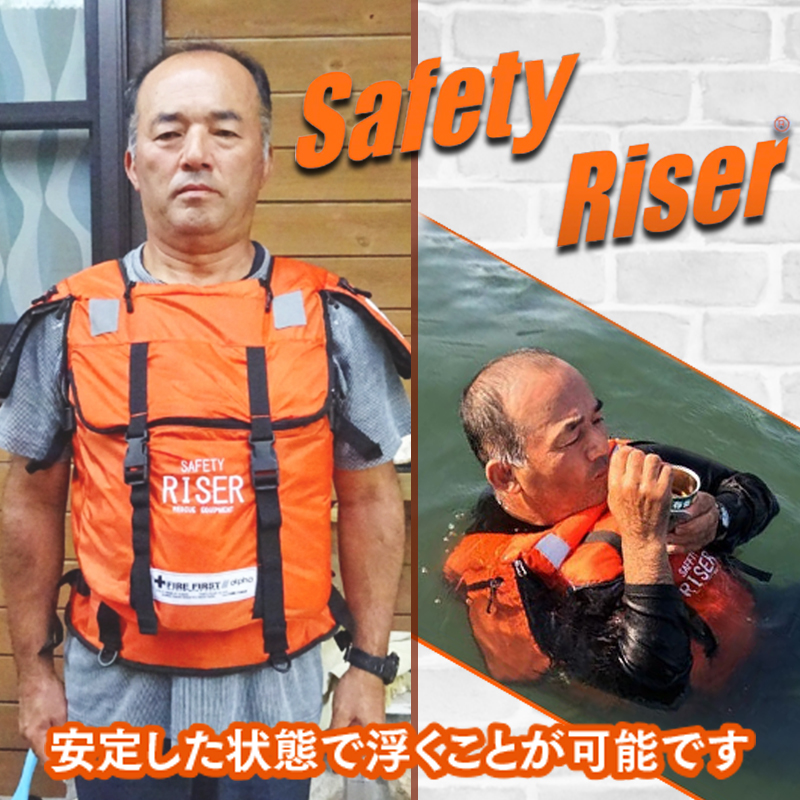 安定した状態で浮くことが可能 セルフレスキューを実現する救命胴衣や防寒着として 「着ることができる防災リュック」 胸部ポケットに浮力保温となるペットボトルなどを入れて保温や浮くことができる災害時以外にも使えるセイフティ・リュック 20,000円(送料込) 2025年スローガン あなたの「あのとき」が、誰かの「これから」を救う。