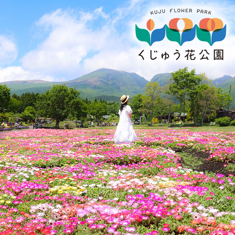 大分県竹田市にあるくじゅう花公園は、阿蘇国立公園内の久住高原に位置し、日本百名山のくじゅう連山や阿蘇五岳を背景とした、美しい自然が満喫できるフラワーパークです。標高850mのくじゅう花公園では、年間を通して500種・500万本の花々が咲き誇ります。
