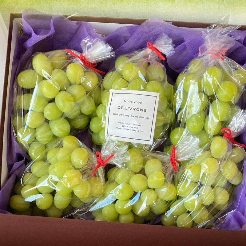 樹上で熟すまで待って、味がのったシャインマスカットだけを収穫しています。提携の農家さんから、早い場合は、さっきまで成っていたものをお届けいたします。 9月から順次発送いたします 6房入り 13,000円 2房入り 5,000円 (※各送料込)
