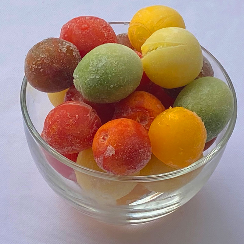 規格外のミニトマトだけど、口の中で溶け始めると、自然の甘さと酸味を満喫! 水分補給に熱中症の予防に、冷たぁぁいトマトもいいぞぉ!! それぞれの味の違いが楽しめます。 150g×6袋 ¥3,200(送料当園負担)