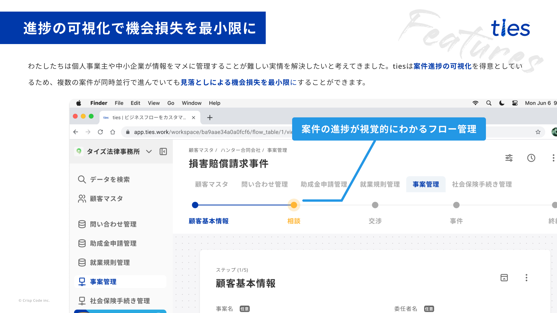 社内共有をスムーズにすることで売上を上げる顧客・案件管理システム「ties(タイズ)」