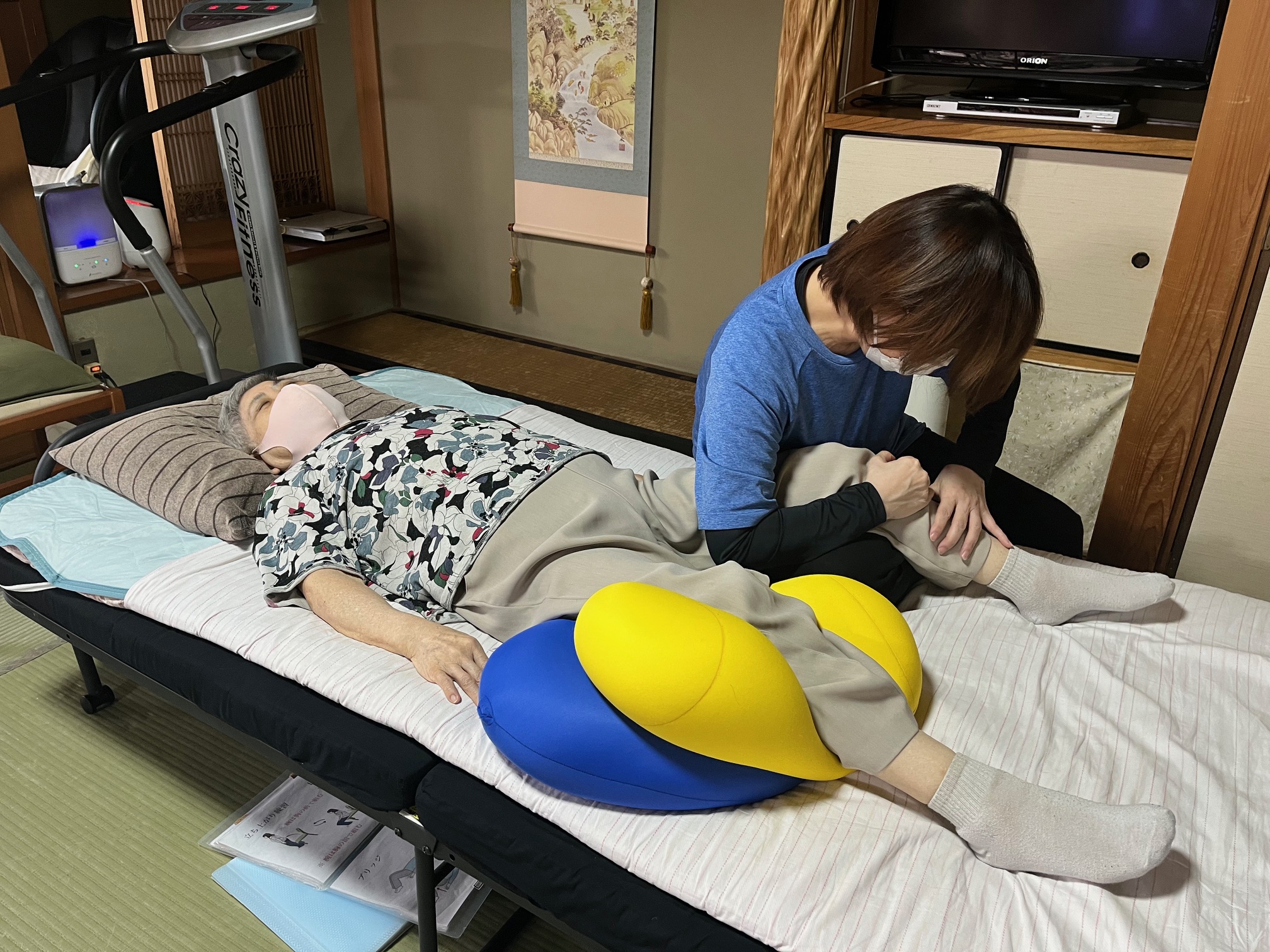 毎日、理学療法士や作業療法士や柔道整復師などのセラピストが、各利用者ごとの障害部位に特化した施術を行い、マニュアル化された各利用者ごとの個別体操を行って、筋肉の緊張緩和や関節可動域の柔軟さを改善し、体力の維持向上に努めています。