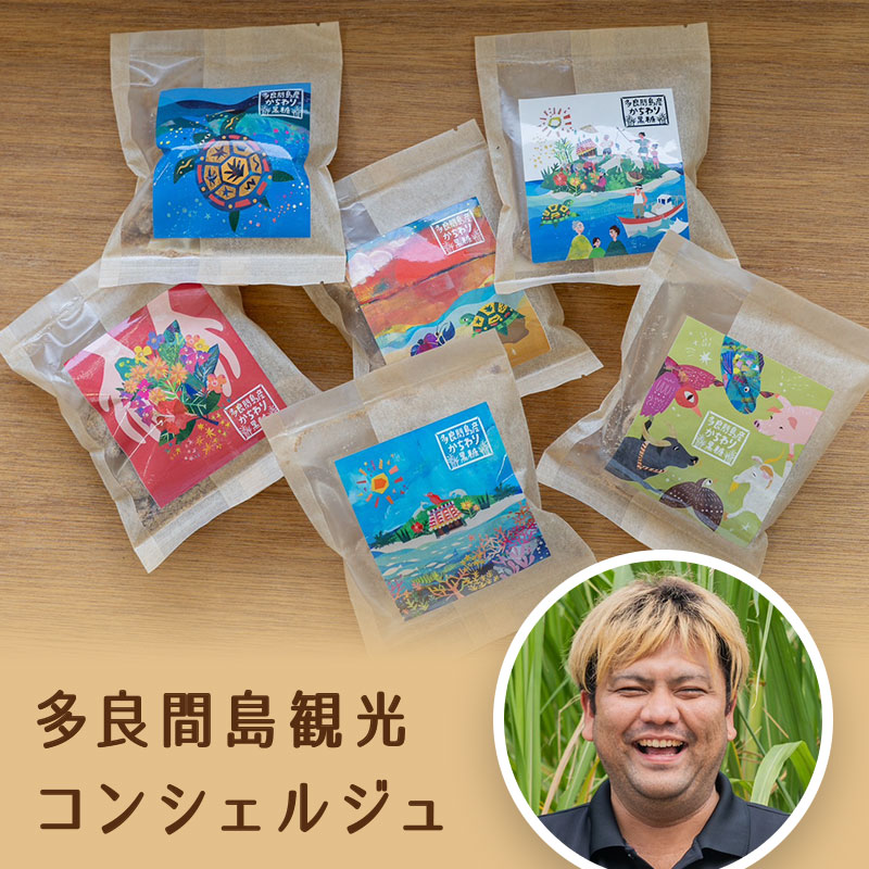 その中でも「多良間島かちわり黒糖」は、味わいだけでなくデザインにも独自性があります。表面には多良間島の美しい風景を思わせるパッケージ、裏面には島の方言による金言(ことわざ)を添えました。全6種類のバリエーションから、贈る相手やシーンに合わせて選べる楽しさがあり、受け取った人の心に温かいメッセージが響きます。手に取る楽しみ、集める喜びを提供する、これまでにない黒糖です。