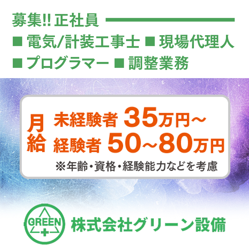 正社員募集!! ■電気/計装工事士 ■現場代理人 ■プログラマー ■調整業務