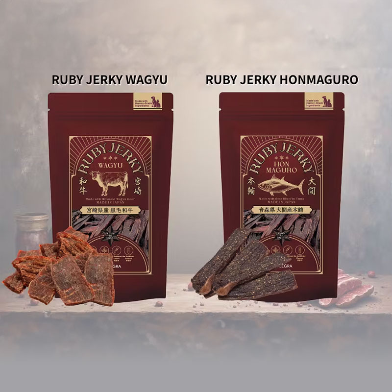 廃棄されてしまう食材たちに光を! 高タンパク×抗酸化×腸活にこだわったプレミアムペットフード 〜RUBY JERKY WAGYU & HONMAGURO〜 ★宮崎県産の黒毛和牛「いぶさな牛」と青森県大間産「本鮪」フードロス部分を活用した完全無添加ジャーキーです! 詳しくはクラウドファンディングにて! https://camp-fire.jp/projects/866356/view