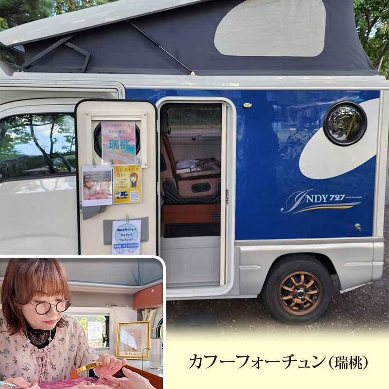 月2回の富士急ハイランドでの鑑定や、イベントでの出張鑑定・オンライン鑑定が話題の、キャンピングカーが目印の占い師。 様々な占術を組み合わせた独自の占術で、あなたのお悩みや人生の課題を紐解き、より良い人生へ導きます。 瑞桃占い 60分 10,000円