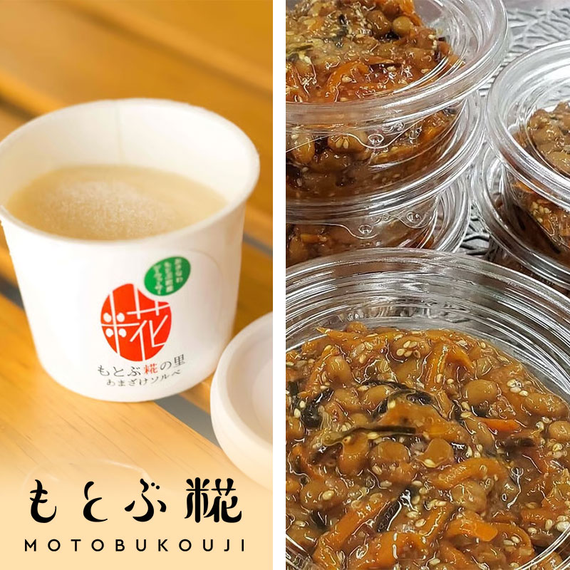 「シークヮーサーソルベ」 シークヮーサー果汁に濃縮甘酒、豆乳ヨーグルト、塩麴を合わせたソルベ 「糀納豆」 納豆と糀菌の最強コラボ! 鰹節や昆布、煎りゴマを混ぜ込み、醤油糀で味を整えました 沖縄へお越しの際はぜひお立ち寄りください。