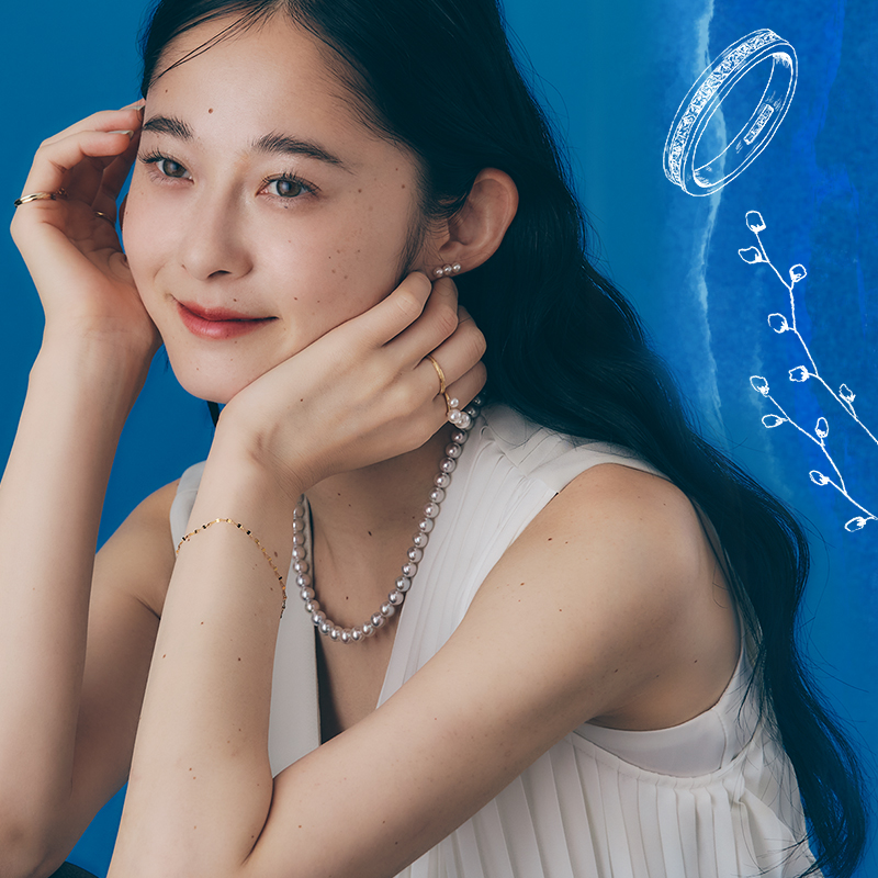 30年以上百貨店にジュエリーを 届けてきた〈富士越〉から新ブランド誕生。 長年培った確かな品質と感性を生かして、 あなたに“本物”を届けます。 サイズの異なるグラデーションが女性に大人気の、 アコヤ真珠を3つ組み合わせたフリーサイズリング K18 Adjustable Ring with Three Akoya Pearls ¥178,000 (4 / 6 / 8mm)