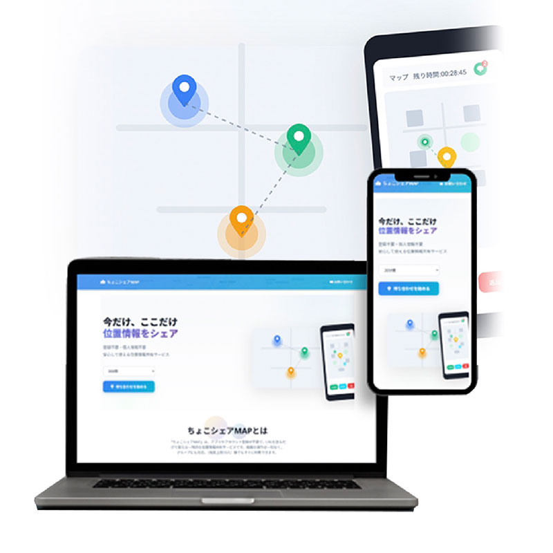 繋がり方の新しい形。 位置情報共有に、もっと自由な選択肢を。 登録不要・個人情報不要 安心して使える位置情報共有サービス 今だけ伝えたい場所がある方へ。すぐに・安全に、あとくされなく。 監視じゃない、信頼の位置共有 アプリやアカウント登録不要!URLを送るだけで位置情報を共有! 待ち合わせや家族の見守り等、日常の「ちょっと居場所を知りたい」を解決します。 ◆完全匿名・登録不要 ◆時間制限で自動終了 ◆安心設計位置共有 ◆チャット機能 ◆複数人での共有 ◆マルチデバイス対応 クラウドファン...