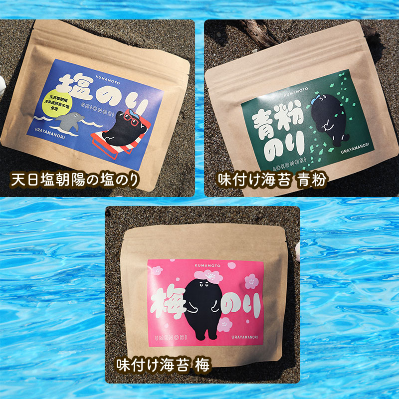 熊本県沖新町、有明海で3代続く海苔漁師が育てる浦山海苔。 希少な有明海1番摘み海苔を使用。 浦山海苔の新キャラクター『のりぼー』がかわいい♪