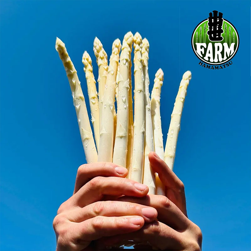 浜名湖産の牡蠣殻と、浜松産峯野牛と満咲牧場の堆肥を使い、減農薬・有機肥料で育てました。 みずみずしく甘いアスパラをお試し下さい。 《朝採れ ホワイトアスパラ》 1kg 3,300円より(送料600円~) ※クール代別途275円 【数量限定】