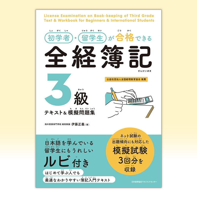 「全経簿記」は、簿記の能力を認定する資格のうち、公益社団法人全国経理教育協会の実施している公的資格である「簿記能力検定」の通称です。 いくつかの簿記の中でも受験しやすいのが特徴で、年少者や留学生といった、日本語や漢字を習熟中の方でも取り組みやすい検定試験となっています。 本書は、そうした初めて日本の簿記を学ぶ方に向け、専門学校で教鞭を執る先生が書いた、簿記能力検定3級商業簿記の入門テキストです。 著者自身がYouTubeチャンネル「イトービジネスチャンネル」を開設し、本書で扱う全経簿記3級の内容はもちろん、ビジネ...